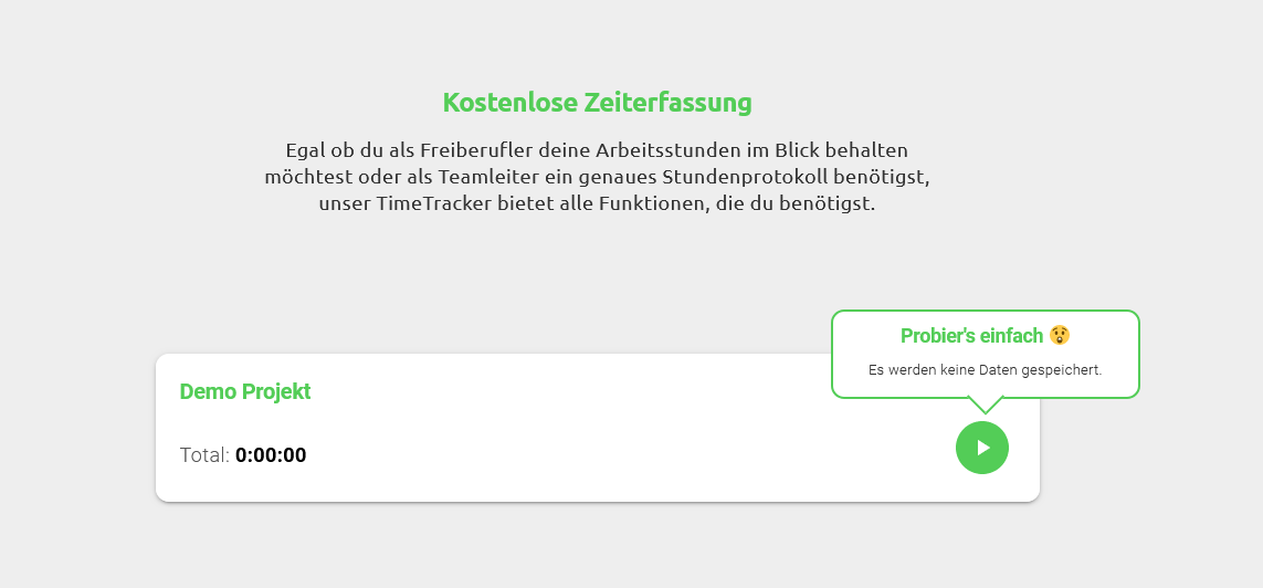 Aus diesem Grund haben sich zwei befreundete Web-Entwickler zusammengetan und genau das umgesetzt, was andere lediglich versprechen: Eine solide, moderne und benutzerfreundliche Zeiterfassung zu entwickeln, die sowohl für Freelancer als auch kleine Teams kostenlos zur Verfügung steht.
