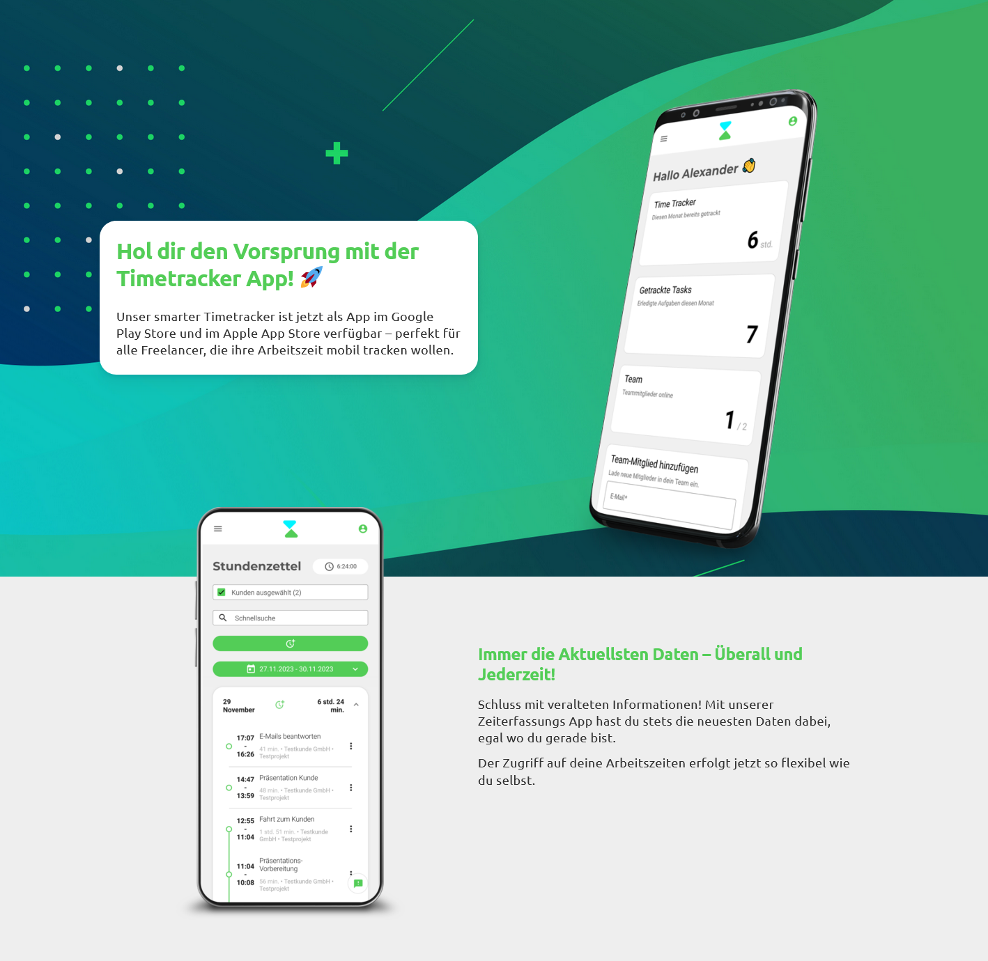 Daher bieten wir eine kostenlose Zeiterfassung an, die zuverlässig funktioniert und bei Bedarf erweitert werden kann.